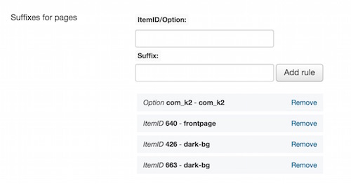 The Hotel template uses few page suffixes which can be configured under the template settings in the Features tab: